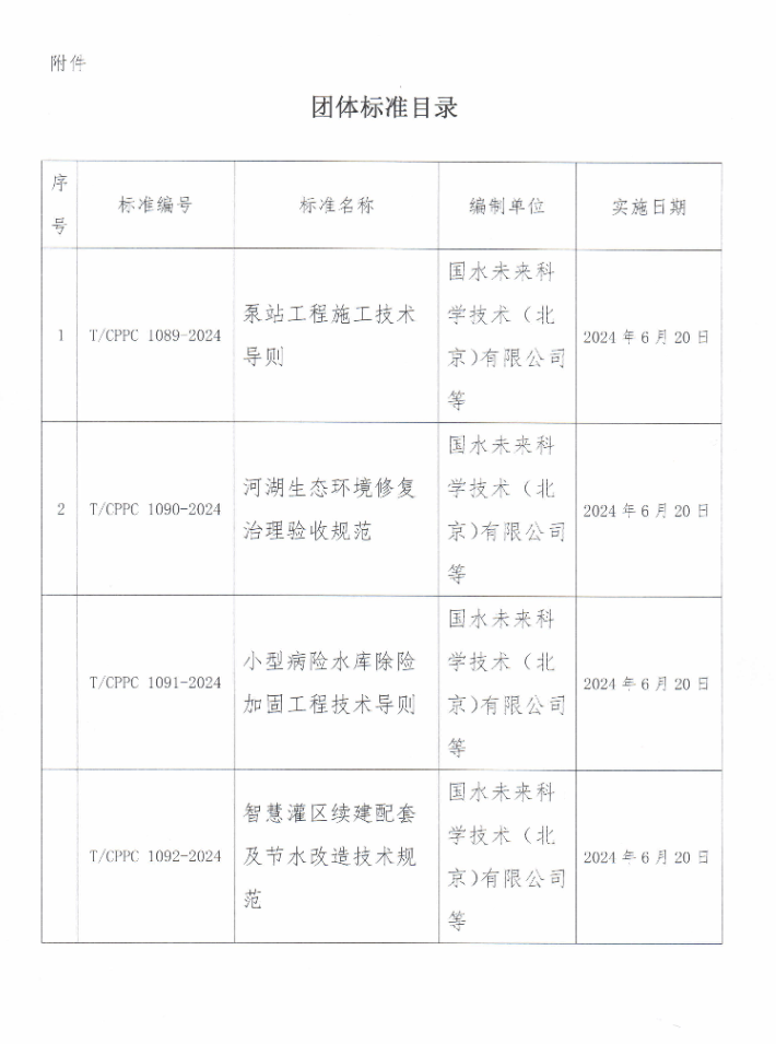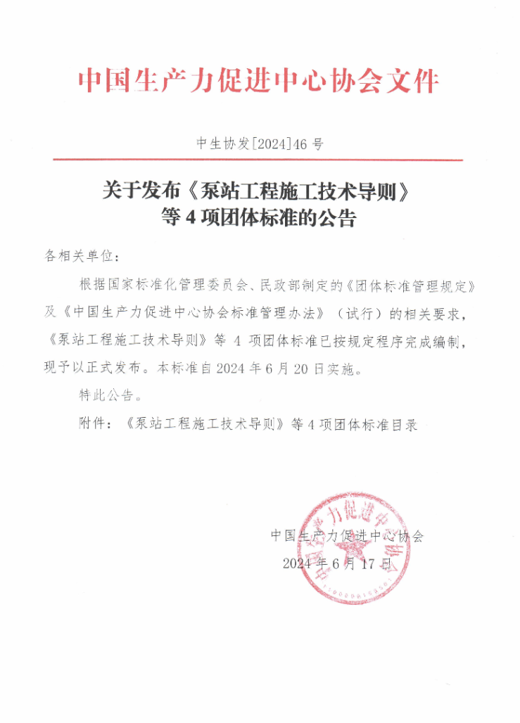关于《泵站工程施工质量验收规范》等4项团体标准立项的通知